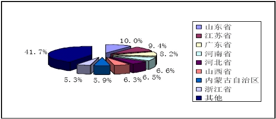 2006年1-6月火力發(fā)電分省構(gòu)成