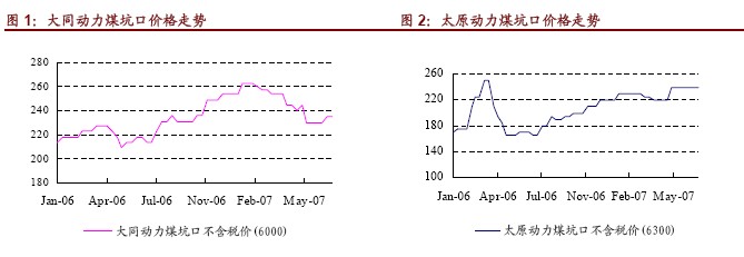 今年7月底,太原動力煤坑口價(不含稅)為240 元/噸,接近兩個月維持在此價位,但較5 月初和去年年底都上漲了20 元/噸。