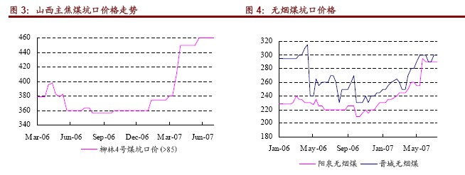 7 月20 日,柳林四號煤坑口不含稅價格為460 元/噸,近兩個月維持穩(wěn)定,但較3 月底上漲了50元/噸,較去年年底上漲了100 元/噸。