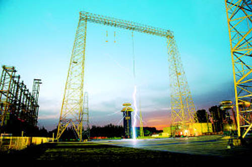 國(guó)家電網(wǎng)公司特高壓直流試驗(yàn)基地戶外試驗(yàn)場(chǎng)空氣間隙試驗(yàn)。