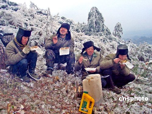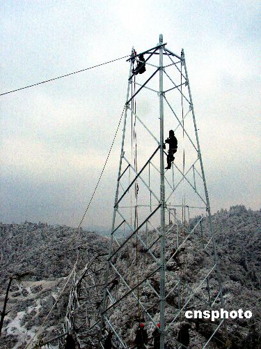 2月1日,貴州電建二公司工人正在搶修位于龍里縣210國(guó)道附近觀(guān)音山上垮塌的電網(wǎng)。由于貴州出現(xiàn)持續(xù)低溫、凝凍天氣,電網(wǎng)線(xiàn)上的覆冰加厚。據(jù)悉,貴州電建二公司工人在山上持續(xù)作業(yè)已達(dá)10余天。中新社發(fā) pengnian攝