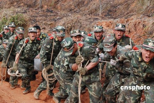 在福建西北部冰雪災(zāi)區(qū),福建省武警總隊(duì)二千多名官兵繼續(xù)日夜奮戰(zhàn)在抗冰災(zāi)第一線,全力以赴地?fù)屝揠娏路,力爭(zhēng)在二月底前恢復(fù)各鄉(xiāng)村電力暢通。中新社發(fā)曾朝群攝