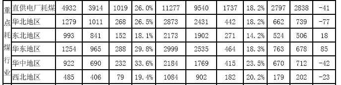 2008年2月份我國各地區(qū)重點耗煤行業(yè)消耗情況