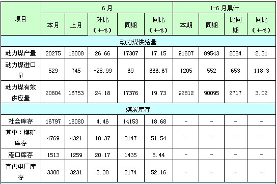 1、本月,中國(guó)動(dòng)力煤產(chǎn)量環(huán)比上漲26.66%。內(nèi)蒙古煤炭產(chǎn)量仍維持全國(guó)第一。今年6月份,內(nèi)蒙古自治區(qū)煤炭產(chǎn)量達(dá)到5824萬(wàn)噸。1-6月份,內(nèi)蒙古原煤產(chǎn)量完成28577萬(wàn)噸,比去年同期增加6159萬(wàn)噸,增長(zhǎng)27.48%。在地方財(cái)政壓力不斷加大影響下,山西省地方煤礦復(fù)產(chǎn)進(jìn)度加快,煤炭產(chǎn)量迅速增加。本月,山西省煤炭產(chǎn)量達(dá)到5792萬(wàn)噸,環(huán)比上漲18.28%。其中,地方煤礦煤炭產(chǎn)量達(dá)到2485萬(wàn)噸,環(huán)比增加42.24%。1-6月,山西省原煤產(chǎn)量為2.59億噸,同比下降14.63%。