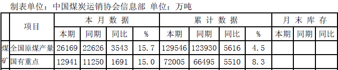 2009年6月全國(guó)原煤產(chǎn)量統(tǒng)計(jì)