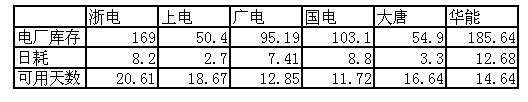 2009年10月29日電廠庫存及日耗情況統(tǒng)計