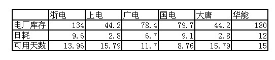 2009年11月08日電廠庫存及日耗情況統(tǒng)計(jì)