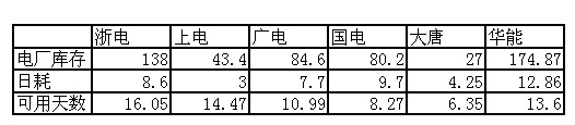 2009年11月11日電廠庫(kù)存及日耗情況統(tǒng)計(jì)