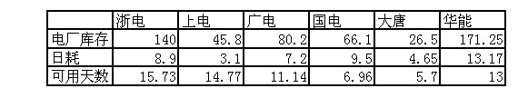 2009年11月16日直供電廠煤炭庫存統(tǒng)計