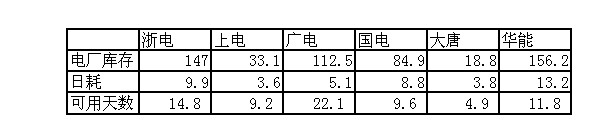 2009年11月25日直供電廠煤炭庫(kù)存統(tǒng)計(jì)