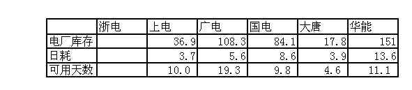 2009年11月29日直供電廠煤炭庫存統(tǒng)計