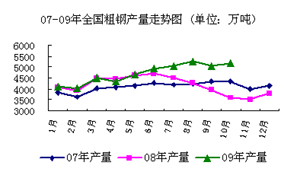 07-09年全國粗鋼產(chǎn)量走勢圖