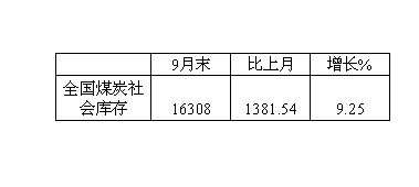 2008年9月全國煤炭社會庫存統(tǒng)計