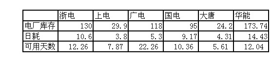 2009年12月4日直供電廠(chǎng)煤炭庫(kù)存統(tǒng)計(jì)