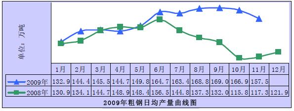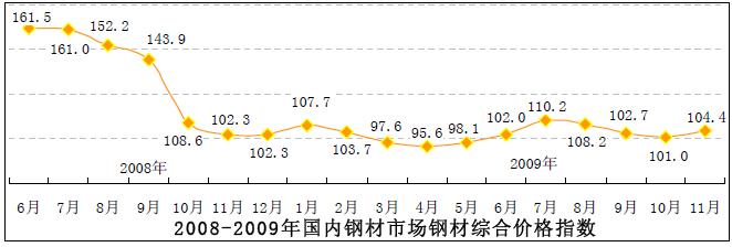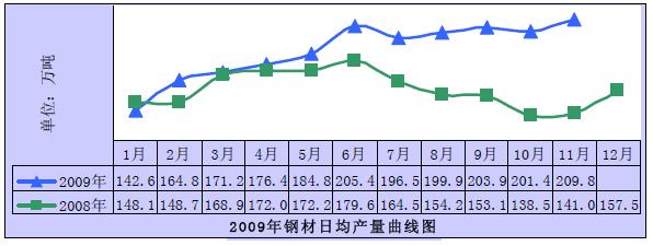 11 月份,鋼鐵企業(yè)進入檢修期,鋼、鐵產(chǎn)品產(chǎn)量呈下降趨勢,而鋼材產(chǎn)量卻創(chuàng)歷史新高,鋼材庫存居高難下,鋼鐵市場弱勢調整,漲跌幅度不大,鋼材凈出口規(guī)模繼續(xù)擴張,10月,鋼鐵行業(yè)保持盈利狀態(tài),煤炭單耗指標平穩(wěn)下降。近期來看,鋼材市場將呈現(xiàn)調整—趨穩(wěn)—小幅回升的走勢,展望2010 年全年,加快淘汰落后產(chǎn)能和推進跨地區(qū)重組將成為鋼鐵行業(yè)調整的主旋律,鋼材市場將保持總體回暖的態(tài)勢。