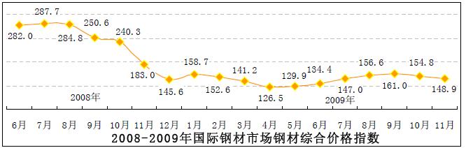 11 月以來,國內鋼材市場總體保持小幅調整的態(tài)勢,國際鋼材市場跌勢依舊。據(jù)中國鋼鐵工業(yè)協(xié)會數(shù)據(jù),11 月末國內鋼材綜合價格指數(shù)104.38 點,比10 月末回升3.36 點。另據(jù)國際鋼聯(lián)數(shù)據(jù),11 月末全球鋼材綜合價格指數(shù)148.9 點,比10 月末回落5.9 點。截至12月4 日,國內鋼價指數(shù)微幅回落,為104.34 點,全球鋼價指數(shù)進一步降至146.5 點。
