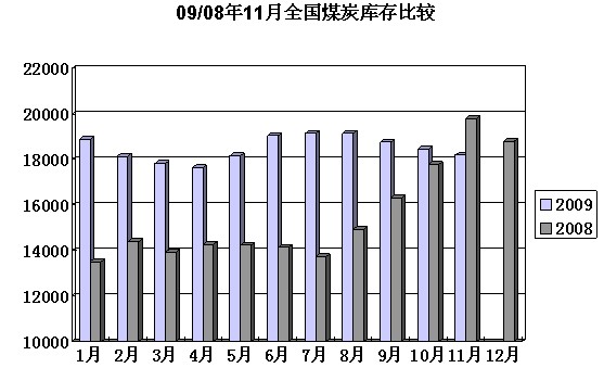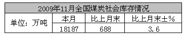 2009年11月全國(guó)煤炭社會(huì)庫(kù)存統(tǒng)計(jì)