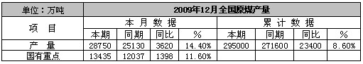 2009年1-12月份我國(guó)各類煤礦生產(chǎn)情況統(tǒng)計(jì)