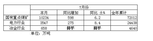 2008年7月我國(guó)煤炭銷量情況統(tǒng)計(jì)