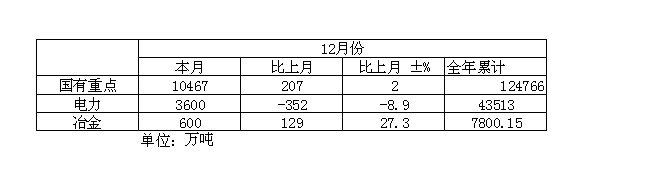 2008年12月我國煤炭銷量情況統(tǒng)計