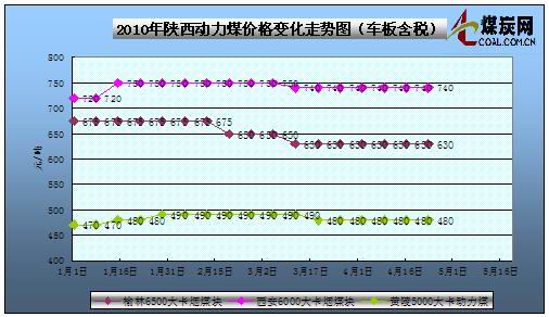陜西榆林6000動力煤坑口價400元/噸,黃陵5000動力煤車板含稅480元/噸,神木6500大卡煙煤塊車板含稅630元/噸,西安6000大卡煙煤塊車板價740元/噸。