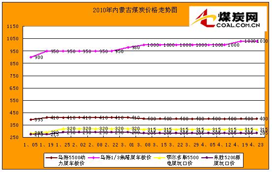【內(nèi)蒙古】 2010年1-3月份內(nèi)蒙古原煤產(chǎn)量16404萬噸,同比增加3715萬噸。本周內(nèi)蒙古烏海焦煤資源緊張,焦煤價格穩(wěn)定成交順暢。內(nèi)蒙古西部部分煤礦漲價5-15元,公路運費由于油價上漲也隨之上揚,每百公里大約上漲5-10元不等。