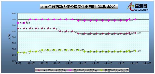 品種 規(guī)格 產(chǎn)地 價格(元/噸) 備注 塊煤(38塊) S0.5Q6500V28 神木 740 西安貨場不含稅價 沫煤 S0.3 Q6000 V32 榆林 620 西安貨場不含稅價 塊煤(25塊) MT8、V28-34 Q>6500 S0.5 榆林 730-740 西安貨場不含稅價 末煤 S<1 Q6000 V32 橫山 530 西安貨場不含稅價 塊煤(38塊) S0.5 Q6300 V 神木 680 西安貨場不含稅價 中塊 Q5500-5800 S<1 V28-36 黃陵 460 坑口含稅價 電煤 Q5000-5500 S<1 V>26 Mt<10 黃陵 390 坑口不含稅價 38塊煤 S<1 Q6000 V20 銅川 640 出礦不含稅價 沫煤 S<1 Q5500 銅川 460 出礦不含稅價 電煤炭 S<1 Q> 銅川 500 出礦含稅價 神木末煤 S<0.5 Q>6000 V> 神木 430 只帶煤檢票 塊煤(38塊) S<0.5 Q6500 V 神木 480 帶煤檢票和增值稅票 神木末煤 S<0.5 Q5700 V30 神木 380 只帶煤檢票