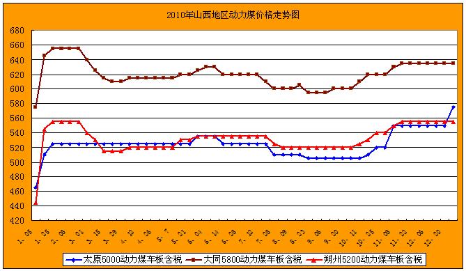 2010年山西地區(qū)動(dòng)力煤價(jià)格走勢圖