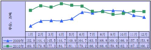 圖 1 2010年生鐵日均產(chǎn)量情況