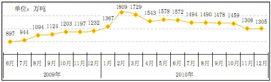 據(jù)印度國家礦業(yè)開發(fā)公司一位負責(zé)人透露,該公司出口鐵礦石價格將從 2011 年 1 月起上調(diào) 3%,該價格將適用整個第一季度,但并未正式公布,隨后又有報道稱,印度政府計劃在 2011 年 4 月 1 日開始的 2011-2012 財政年度對鐵礦石出口統(tǒng)一加征 20%的出口關(guān)稅,將進一步推高國際礦價。另據(jù)路透社報道,巴西礦業(yè)巨頭淡水河谷 2011 年 1 月料將季度鐵礦石合約價格提高 8.8%,至每噸 149.20 美元,這一漲幅是根據(jù)上期(2010 年 9 月 1 日-11 月30 日)普氏指數(shù)的漲幅確定的。2011 年第一季度鐵礦石價格上漲已成定局。正是基于對鐵礦石漲價的預(yù)期,鋼廠、貿(mào)易商早已做好了囤貨準(zhǔn)備,2010 年 11 月鐵礦石進口量較 10 月份增長 25.5%,至 5738 萬噸,12 月進口量繼續(xù)微量增長,達到 5808 萬噸,國內(nèi)鐵礦石庫存持續(xù)上升, 據(jù)蘭格鋼鐵網(wǎng)數(shù)據(jù), 截至 1 月7 日, 全國 19 個主要港口鐵礦石庫存量升至 8090萬噸。進口礦的激增導(dǎo)致鐵礦石市場持續(xù)追漲,短期內(nèi)推高了鋼價,然而,2011 年鋼鐵需求具有很大的不確定性,且第一季度是用鋼淡季,鋼廠轉(zhuǎn)嫁成本壓力可謂困難重重。