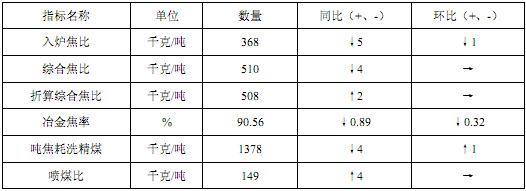 與前 10 個月比,1-11 月大中型鋼鐵企業(yè)煉鐵工序中,各項主要技經(jīng)指標(biāo)基本穩(wěn)定,入爐焦比略有上升,煉焦工序中,冶金焦率下降,噸焦耗洗精煤上升。