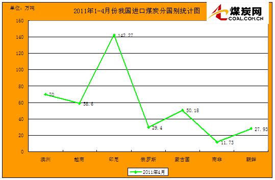 2011年1-4月份我國進(jìn)口煤炭分國別統(tǒng)計(jì)圖