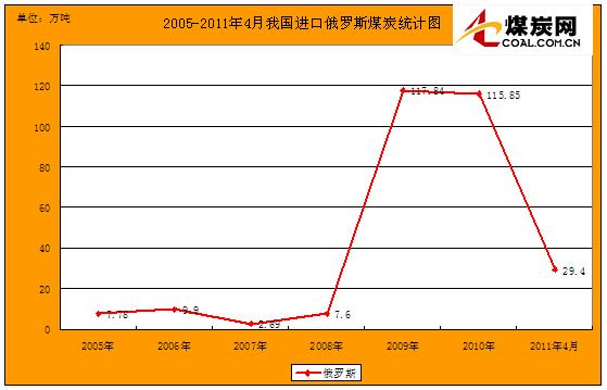 2005-2011年4月我國進口俄羅斯煤炭統(tǒng)計圖