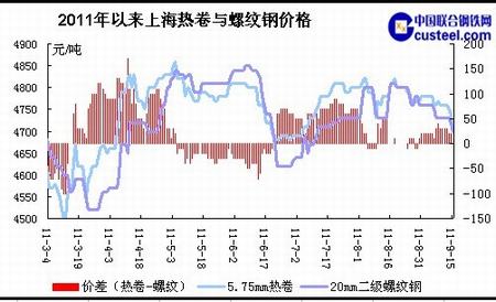 2011年以來上海熱卷與螺紋鋼價(jià)格
