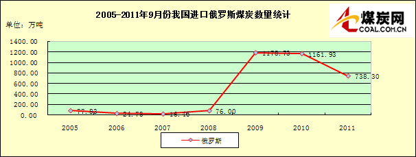 2005-2011年9月份我國進口俄羅斯煤炭數(shù)量走勢統(tǒng)計
