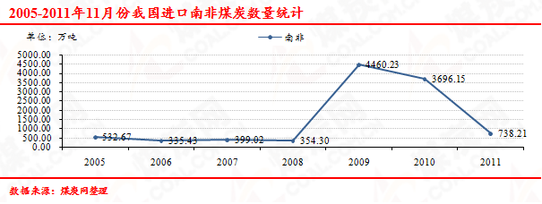 2005-2011年11月份我國進(jìn)口南非煤炭數(shù)量走勢統(tǒng)計