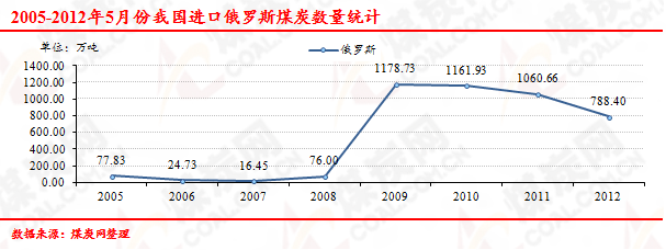 2005-2012年5月份我國進(jìn)口俄羅斯煤炭數(shù)量走勢統(tǒng)計(jì)