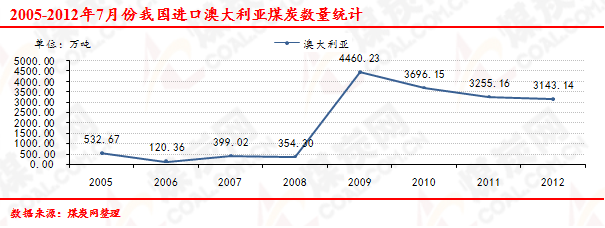 2005-2012年7月份我國進口澳大利亞煤炭數(shù)量走勢統(tǒng)計