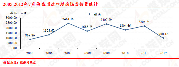 2005-2012年7月份我國進(jìn)口越南煤炭數(shù)量走勢統(tǒng)計(jì)