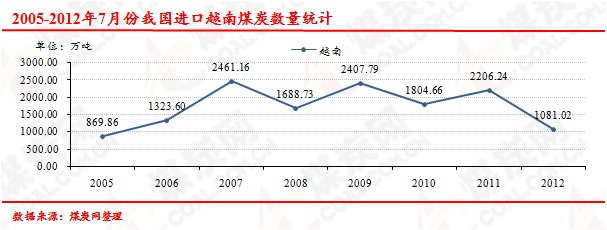 2005-2012年8月份我國進(jìn)口越南煤炭數(shù)量走勢統(tǒng)計