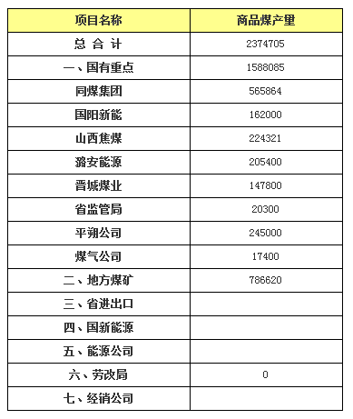 2013年01月07日山西省商品煤產(chǎn)量情況