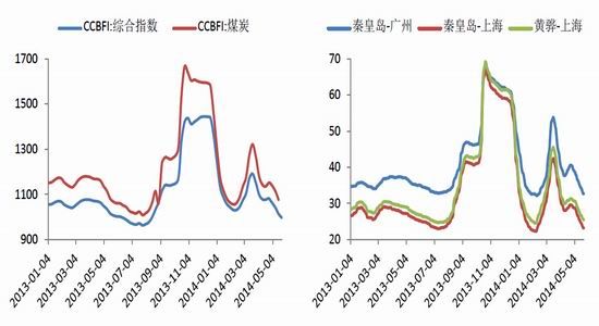 從期貨價格、環(huán)渤海動力煤指數(shù)及CCI1指數(shù)來看,數(shù)據(jù)相關性較高,且期貨表現(xiàn)出較強的領先性,目前期貨價格向下摸索,CCI1指數(shù)也出現(xiàn)下行跡象,環(huán)渤指數(shù)是否能繼續(xù)堅挺有待觀察。