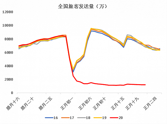 圖1:全國旅客發(fā)送量遠低于往年農(nóng)歷同期