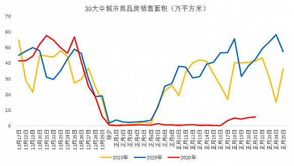 高頻指標顯示,新冠疫情對房地產(chǎn)銷售有明顯影響。政策上看,1月26日中國房地產(chǎn)協(xié)會號召“房地產(chǎn)開發(fā)企業(yè)應(yīng)暫時停止售樓處銷售活動,待疫情過后再行恢復(fù)”。盡管有部分房企嘗試在線上銷售,但由于房產(chǎn)交易涉及的資金規(guī)模大,居民對線上購房的意愿不強,因而房企的這種探索效果并不佳。今年春節(jié)后,30大中城市商品房銷售面積回升幅度,明顯小于往年同期。