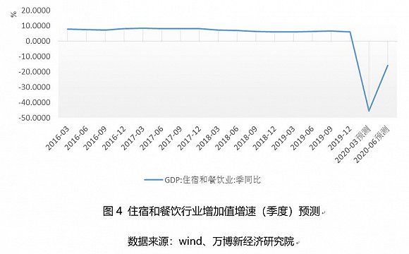 住宿和餐飲業(yè):三季度及以后行業(yè)全面恢復(fù)但上半年損失的產(chǎn)值無法回補(bǔ),預(yù)計(jì)三季度和四季度增加值分別為4887億元、5375億元,增速均為6%。預(yù)計(jì)2020年全年住宿餐飲行業(yè)增加值為16058億元,全年同比增速約為-11%。