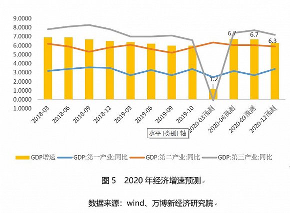 綜合以上因素,預(yù)計(jì)三季度GDP增長速度同比約6.7%,四季度同比6.3%,下半年經(jīng)濟(jì)增速預(yù)計(jì)為6.5%。預(yù)計(jì)2020年全年GDP增速約為5.4%。