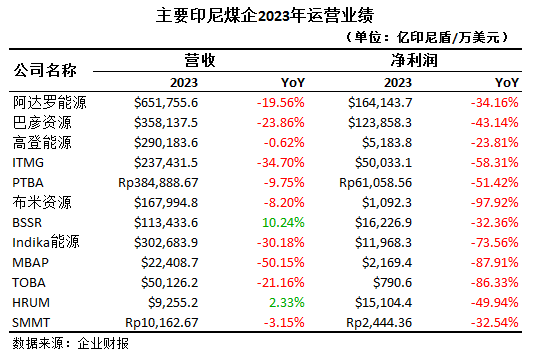 另一大型煤企印尼ITM公司(PT Indo Tambangraya Megah Tbk)2023全年營收23.74億美元,同比下降34.7%;凈利潤為5億美元,同比大降58.31%。