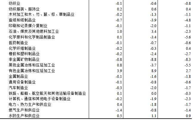 工業(yè)生產(chǎn)者購進價格中,建筑材料及非金屬類價格下降8.4%,農(nóng)副產(chǎn)品類價格下降4.6%,黑色金屬材料類價格下降3.1%,化工原料類價格下降2.9%,燃料動力類價格下降2.1%;有色金屬材料及電線類價格上漲8.1%,紡織原料類價格上漲0.3%。