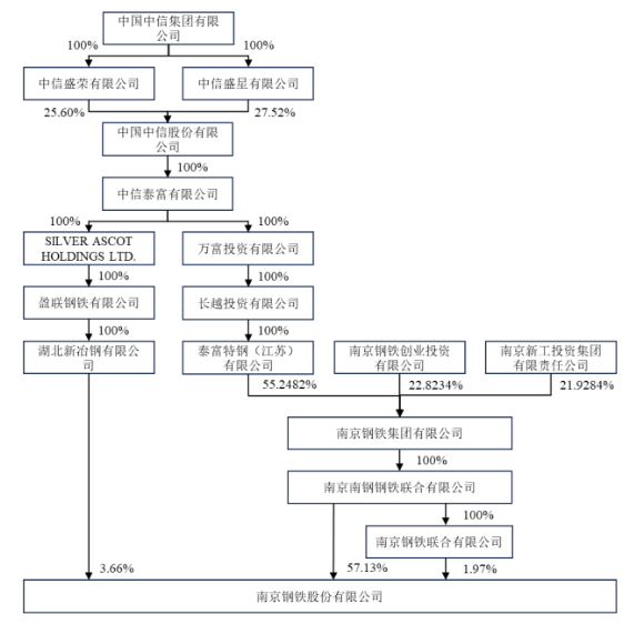 據(jù)了解,本次收購(gòu)系在中信集團(tuán)實(shí)際控制下的不同主體之間進(jìn)行,未導(dǎo)致南鋼股份的實(shí)際控制人發(fā)生變化。江蘇特鋼、新冶鋼均為中信泰富全資子公司,實(shí)際控制人均為中信集團(tuán)。